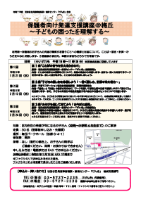 | 対象 | 区内在住の発達が気になるお子さん(幼児~小学4年生)のご家族の方 |